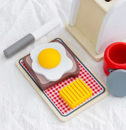 Conjunto Torradeira Brinquedo Madeira Infantil - Vermelho