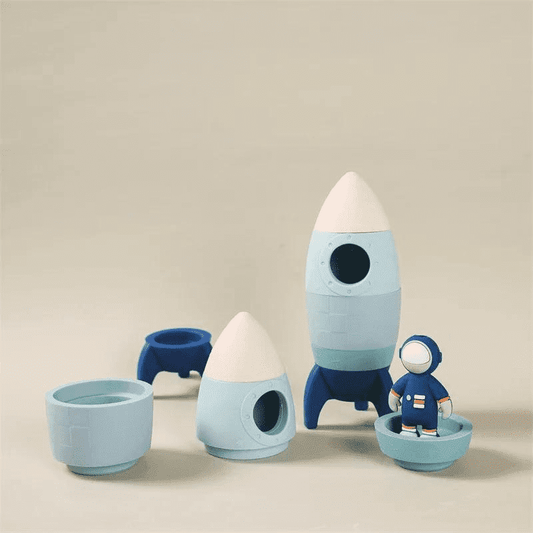 Brinquedo de Foguete Infantil Silicone - com Astronauta Azul